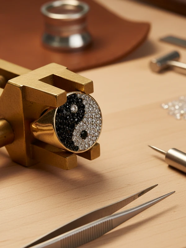 Trabalhamos exclusivamente com ouro 18k, prata 950 e pedras preciosas certificadas, garantindo pureza e autenticidade.